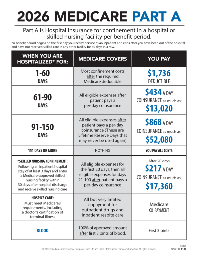 People who buy Part A will pay a premium of either $311 or $565 each month in 2026 depending on how long they or their spouse worked and paid Medicare taxes. If you choose NOT to buy Part A, you can still buy Part B.